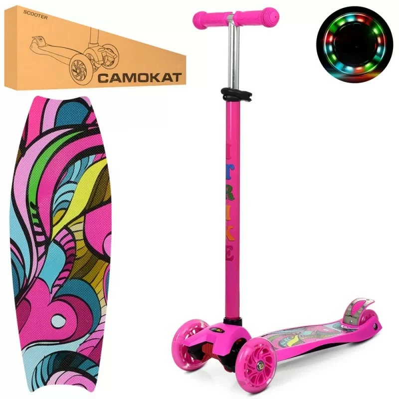 Самокат детский трехколесный iTrike MAXI JR 3-055-P колеса ПУ с подсветкой, руль 79-88см, Розовый с рисунком
