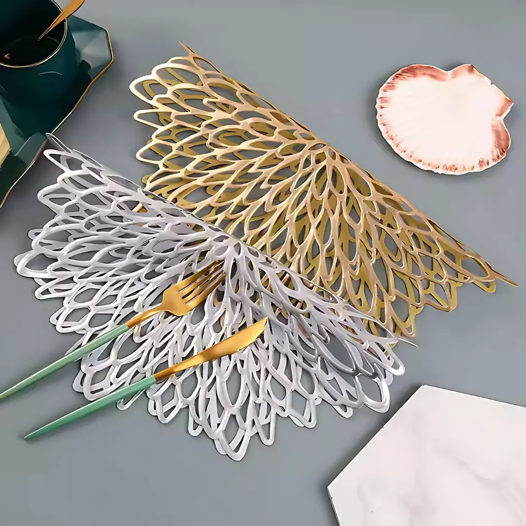 Сервировочная салфетка фигурная под горячее, коврик сервировочный серебристый набор 2 шт