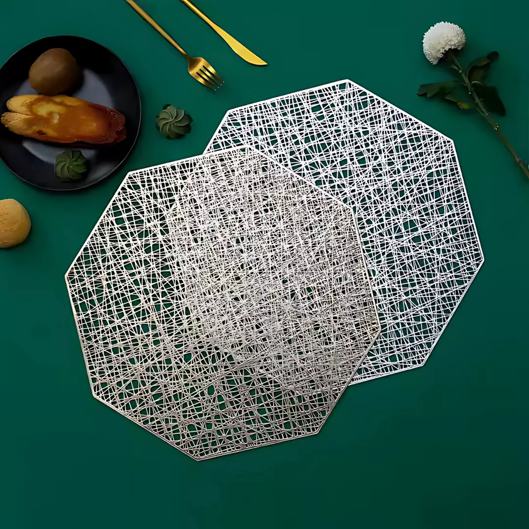 Сервировочная салфетка фигурная под горячее, коврик сервировочный серебристый набор 2 шт
