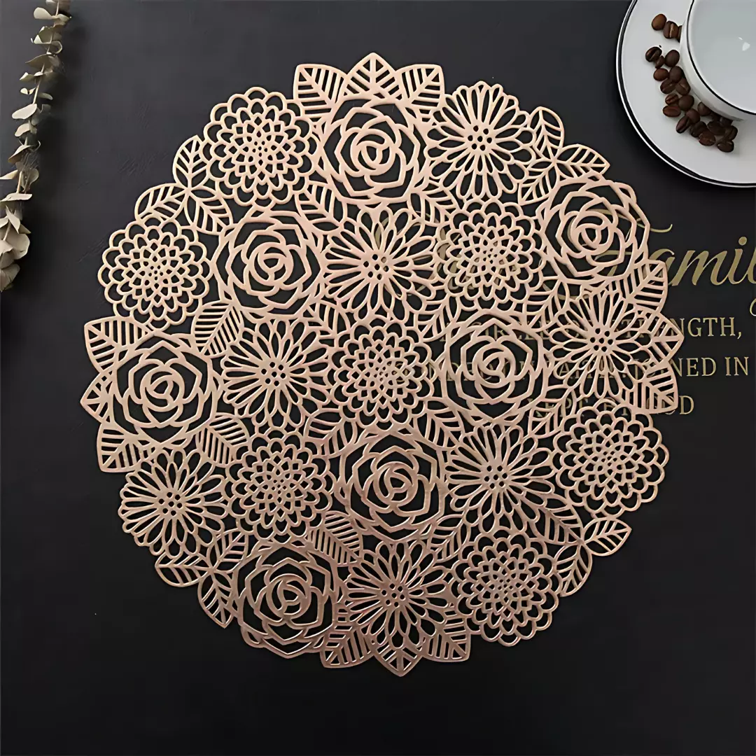 Салфетки рассчитаны на тарелки, чашки, кастрюли и другую посуду. В комплект входит два сервировочных коврика диаметром 38×38 см. Отлично подойдут для кухни, столовой, гостиной или дачи.