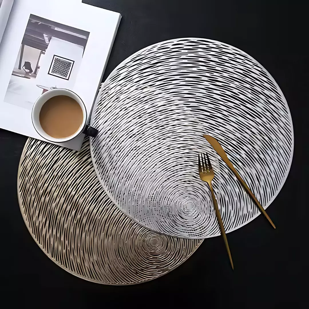 Сервировочная салфетка круглая под горячее, коврик сервировочный серебристый набор 2 шт
