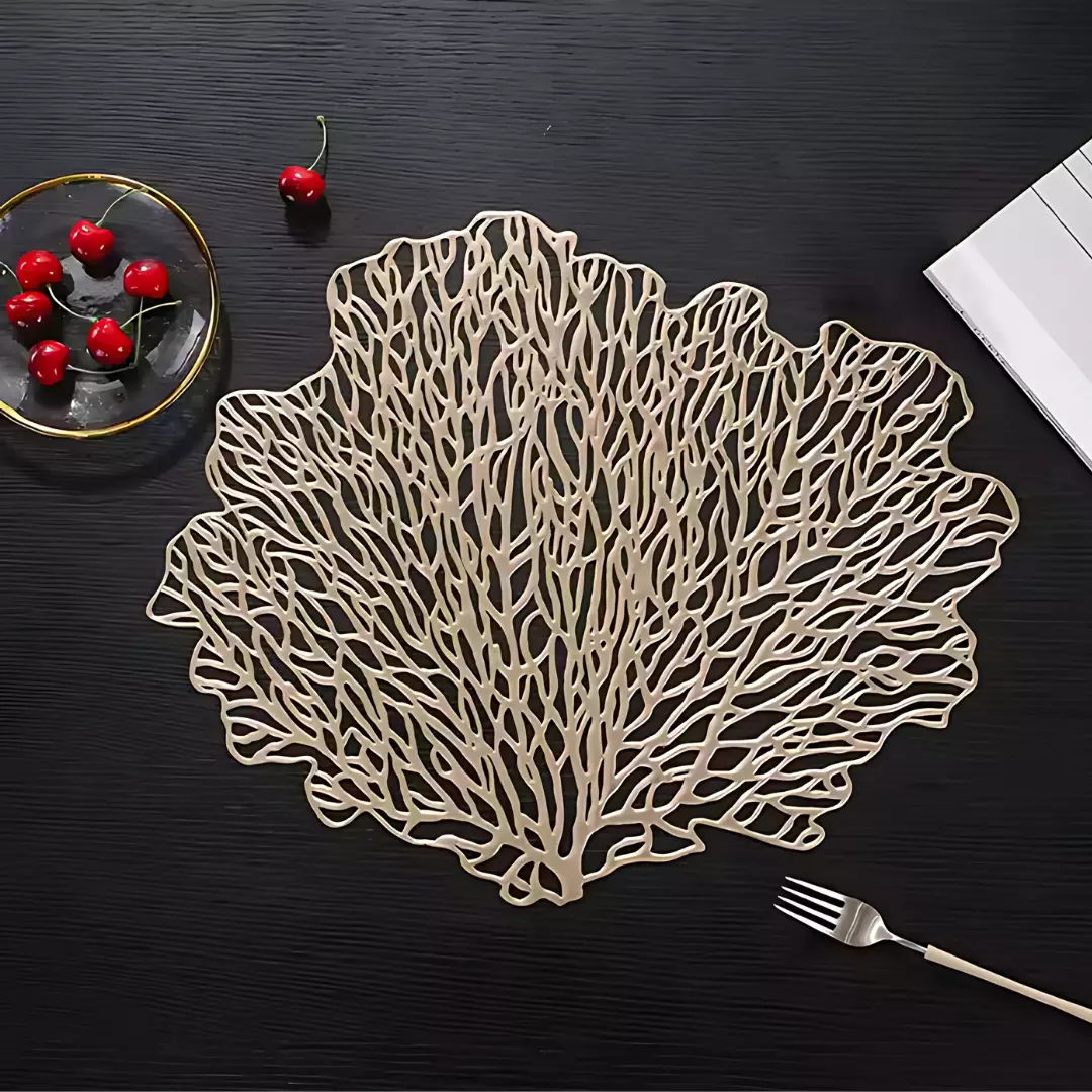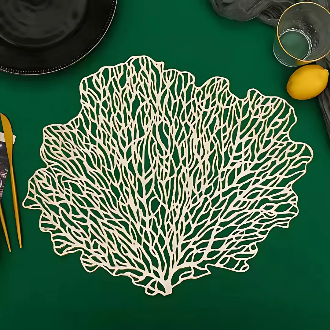 Сервировочная салфетка под горячее фигурная 48х38 см, коврик сервировочный золотистый набор 2 шт