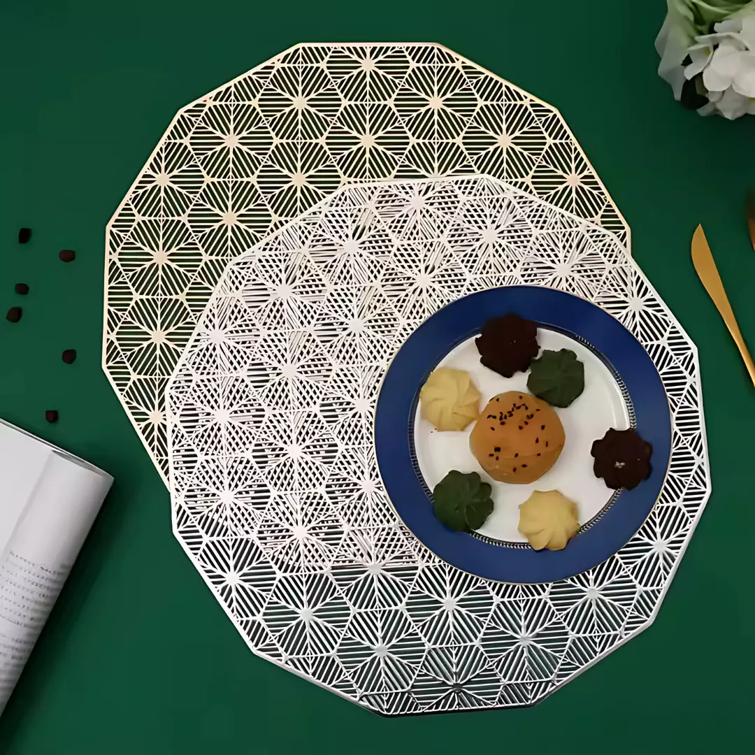 Сервировочная салфетка под горячее круглая 38х38 см, коврик сервировочный золотистый набор 2 шт