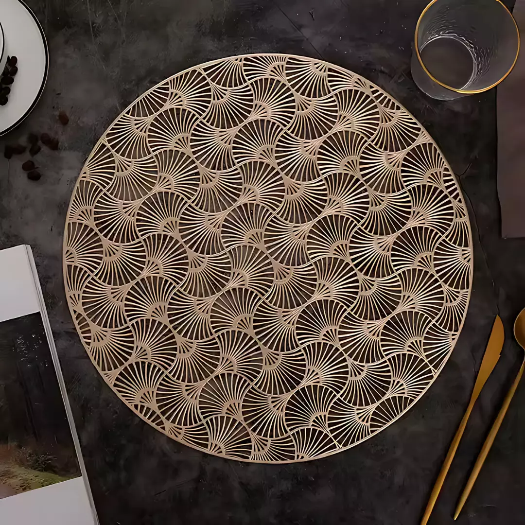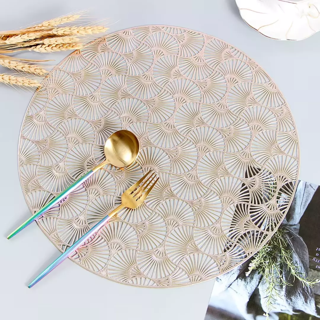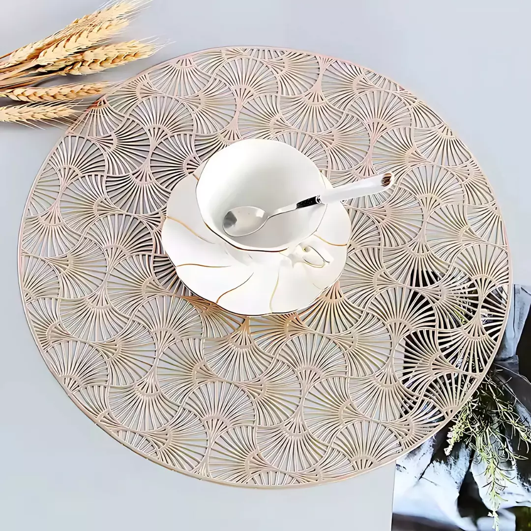 Сервировочная салфетка под горячее круглая 38х38 см, коврик сервировочный золотистый набор 2 шт