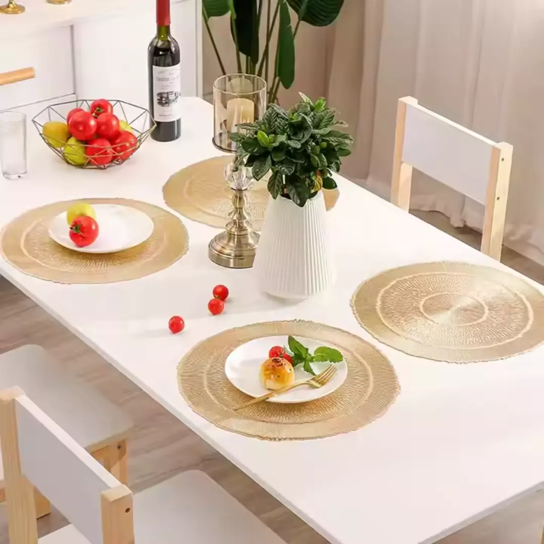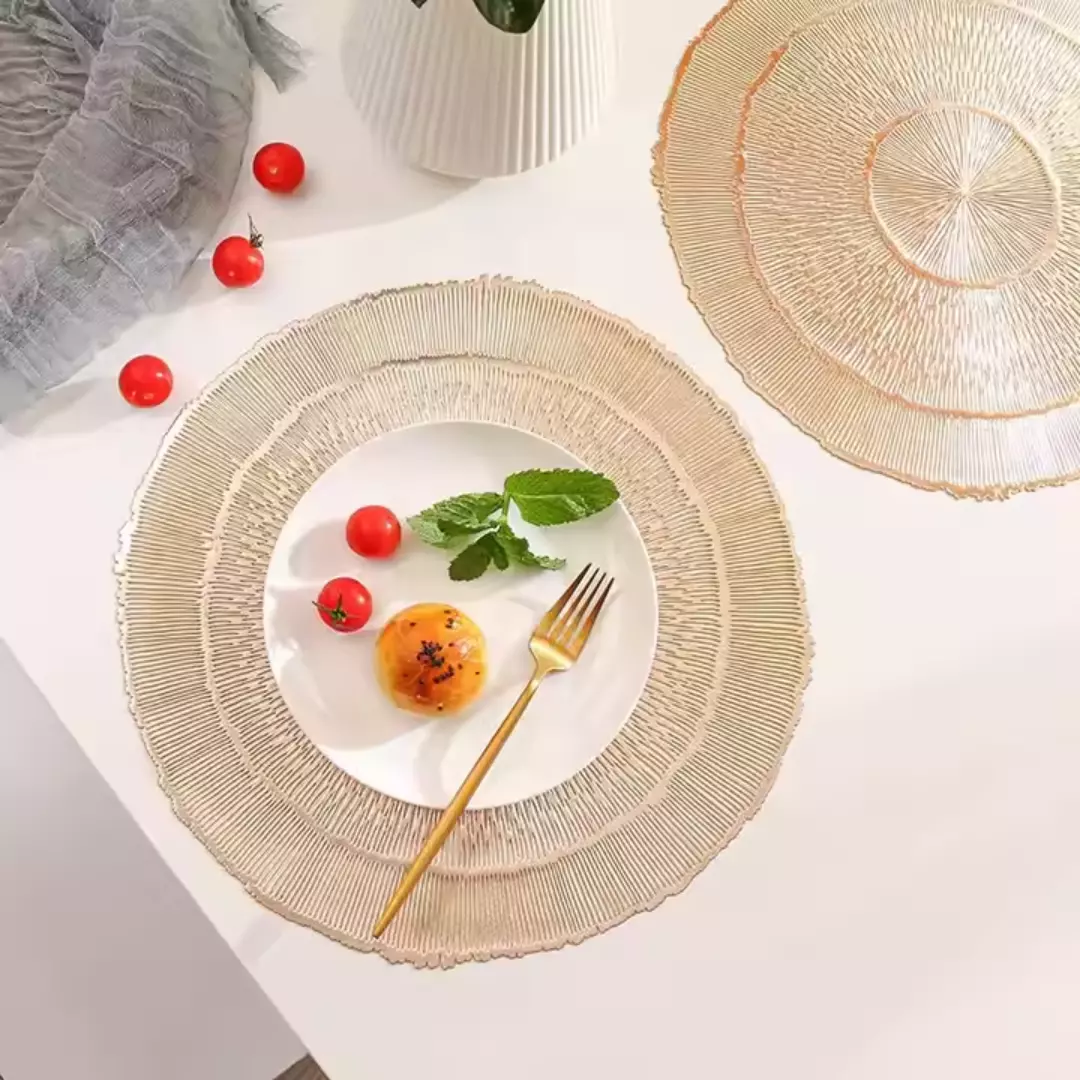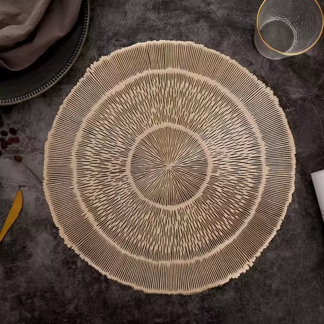 Сервировочная салфетка под горячее круглая, коврик сервировочный золотистый набор 2 шт