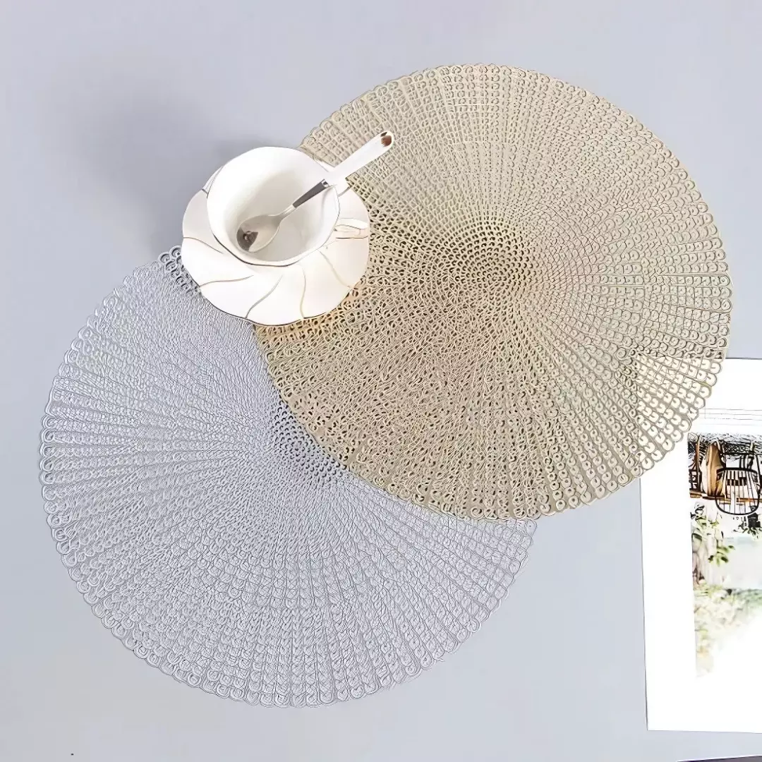 Сервировочная салфетка под горячее круглая, коврик сервировочный золотистый, набор 2 шт