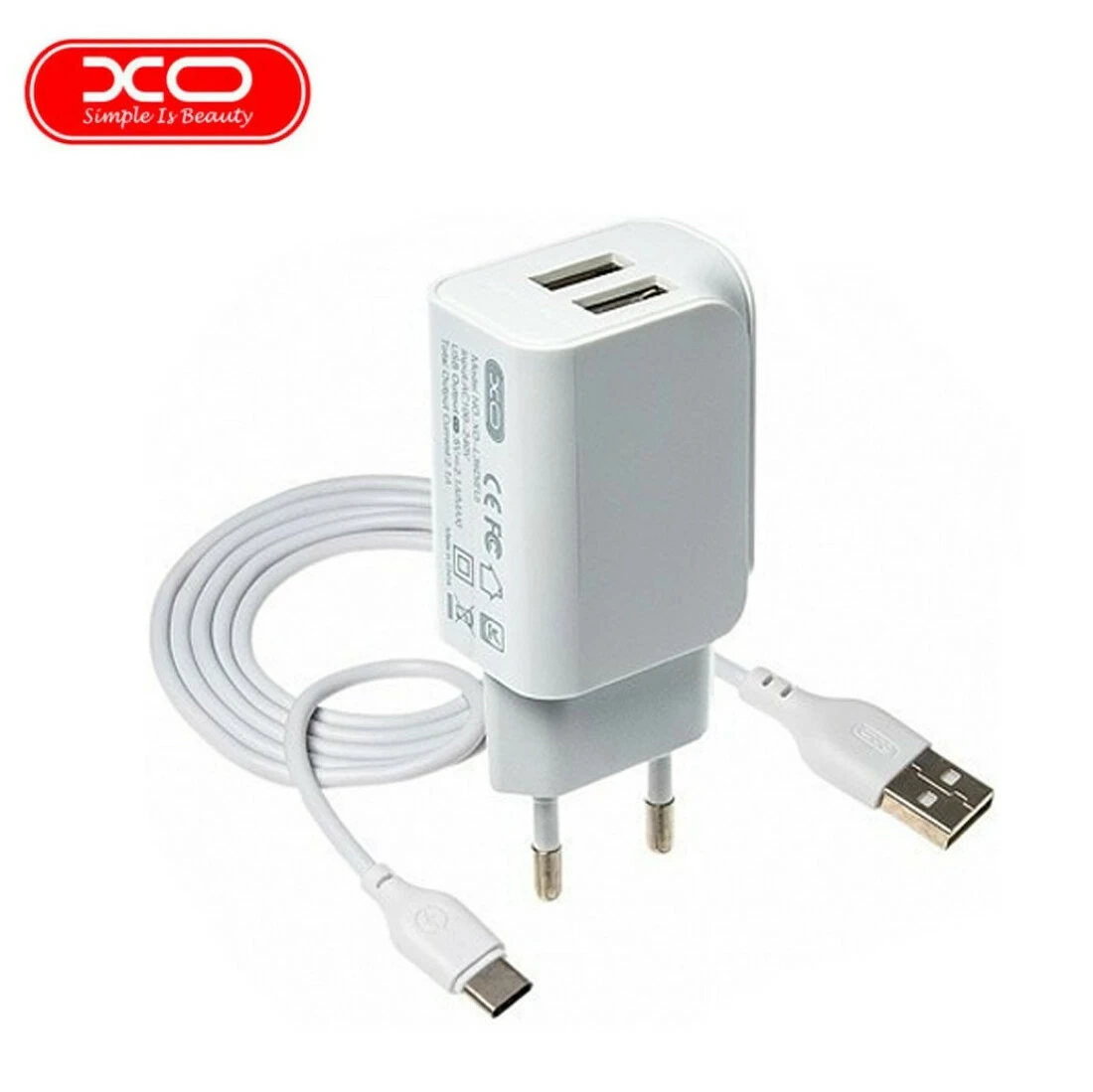 Сетевое зарядное устройство с кабелем USB - Type-C XO L35D и двумя USB портами 2.1A Белый