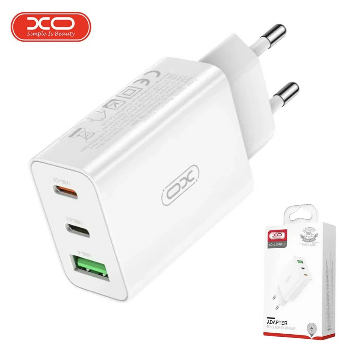 Сетевое зарядное устройство XO L101 PD + QC3.0 1USB/2Type-C/20W зарядный блочок для телефона Белый