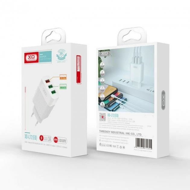 Сетевое зарядное устройство XO L72 QC3.0 на 3USB/3A - это