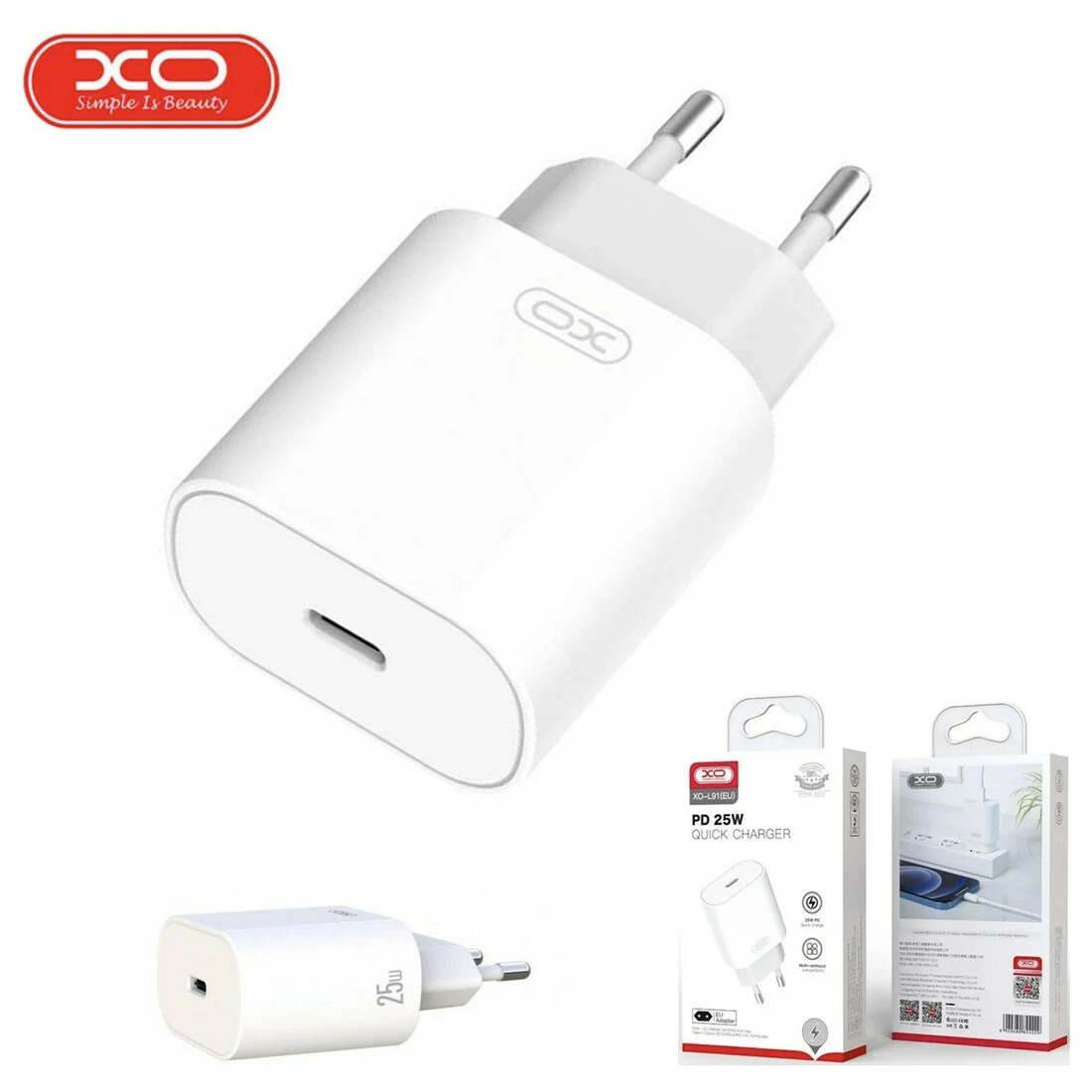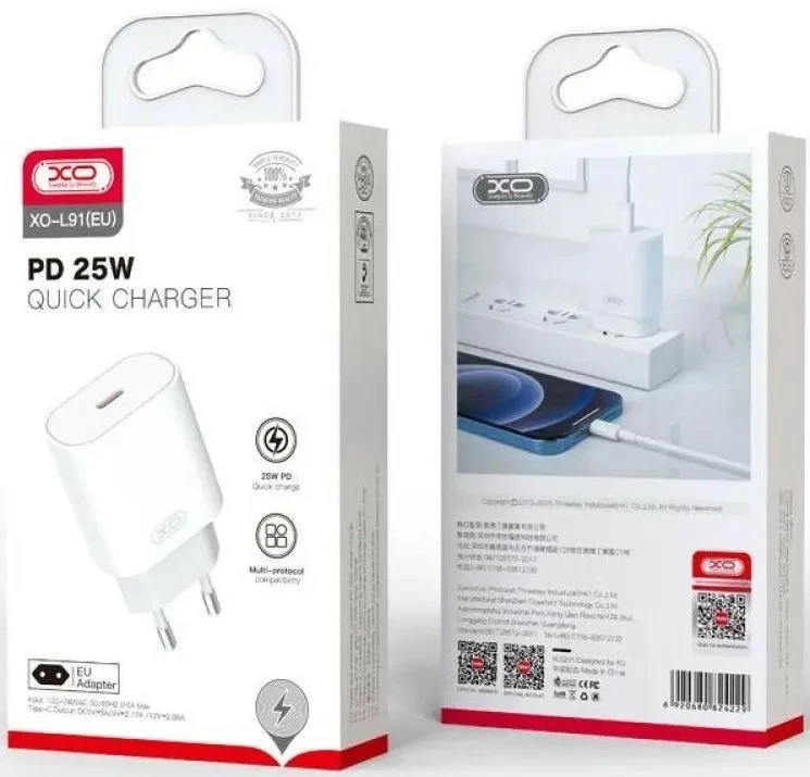 Сетевое зарядное устройство XO L91 EU 25W TYPE-C является быстрым