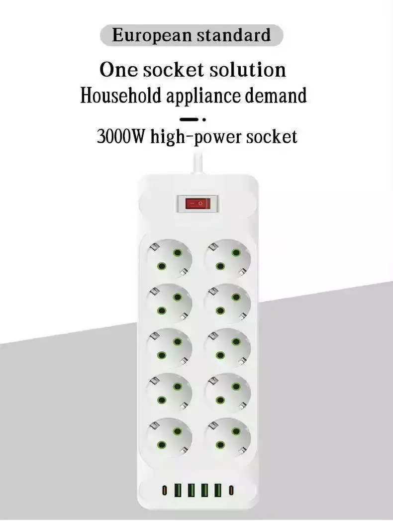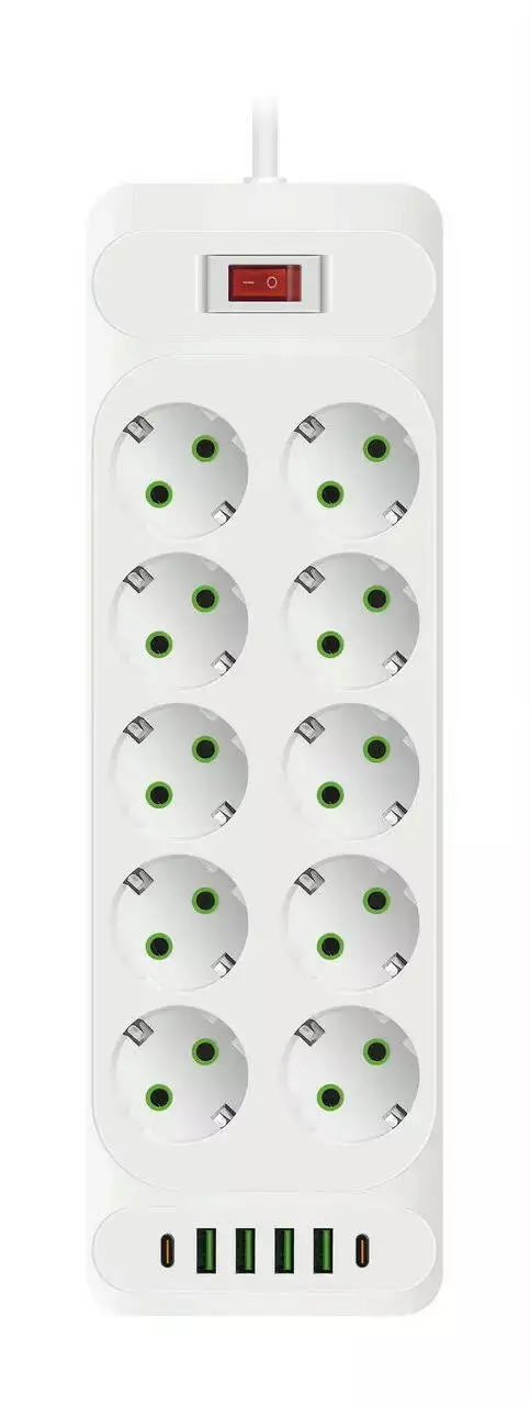 Этот сетевой фильтр предоставляет пользователю максимальное удобство благодаря четырем выходным портам USB A и двум портам USB Type-C. С номинальной мощностью в 3000 Вт, он справляется с питанием даже самых требовательных устройств. Порты USB Type-C идеально подходят для зарядки современных смартфонов и планшетов, а USB A порты обеспечивают совместимость с более широким спектром гаджетов.