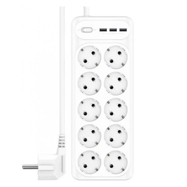 Сетевой удлинитель XO WL07 10 розетки/3USB/3,1A переходник тройник на 10 розеток и 3 USB Белый