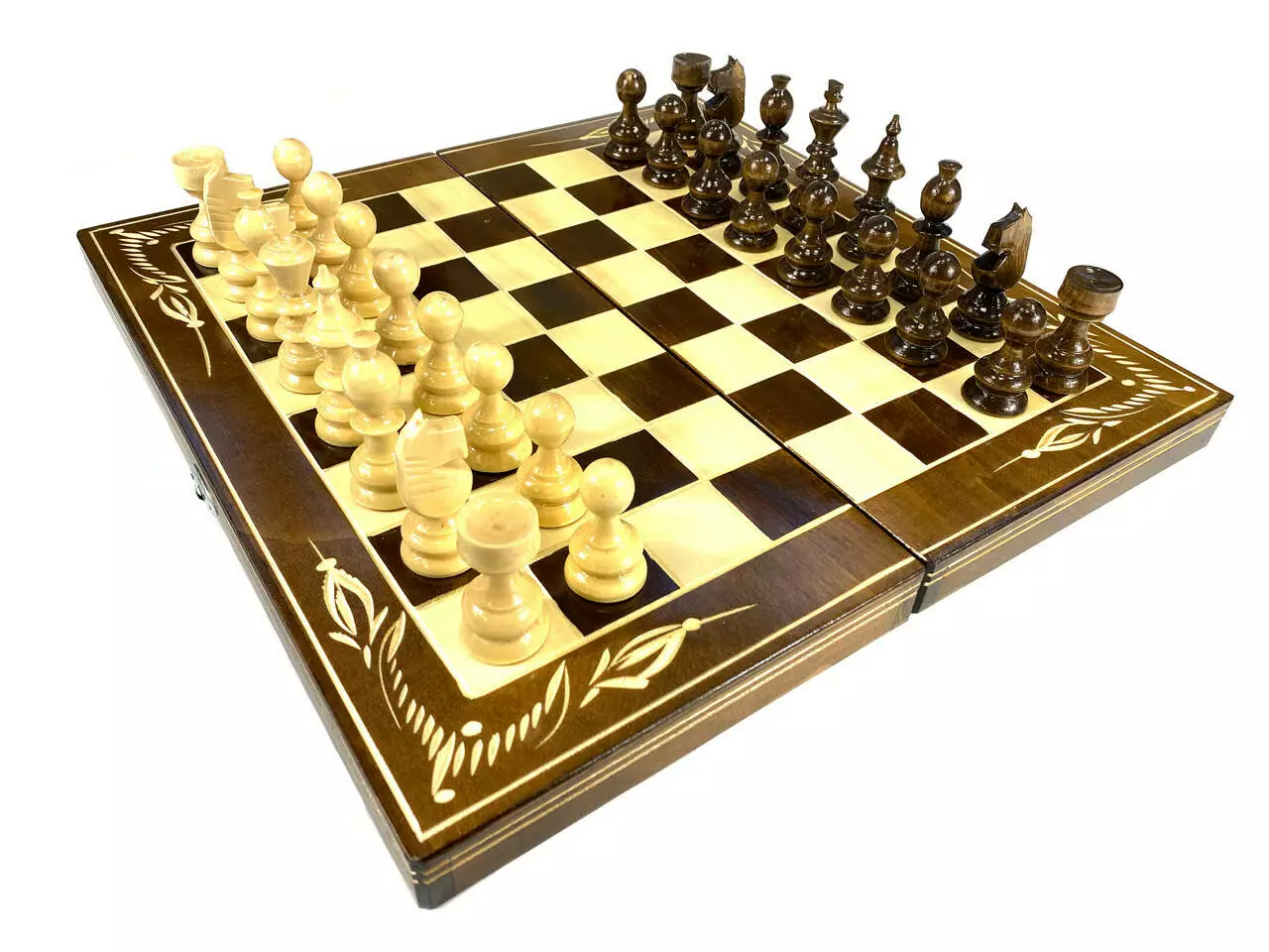 Шахматы, шашки, нарды, шахматная доска для игор 3 в 1 из натурального дерева размер 38.5х38.5 см (L)
