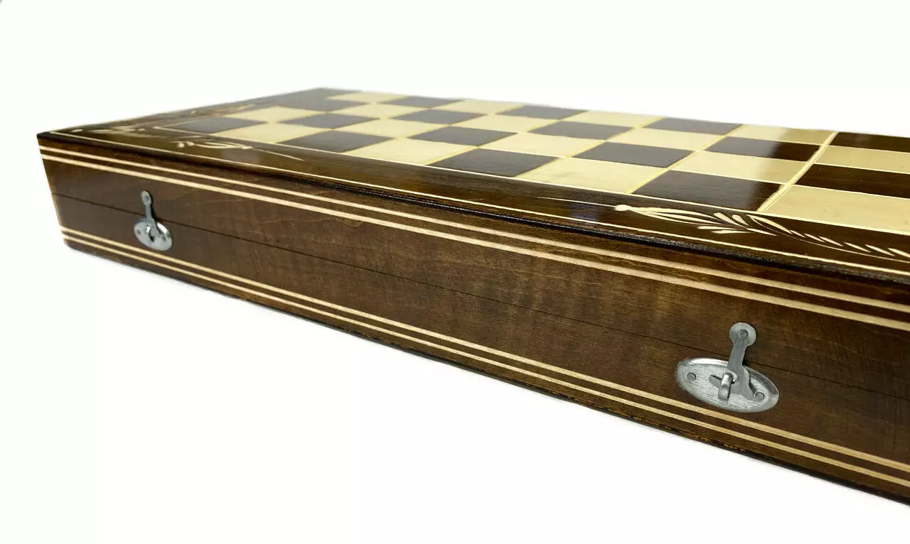 Шахматы, шашки, нарды, шахматная доска для игор 3 в 1 из натурального дерева размер 44.5х44.5 см (XL)