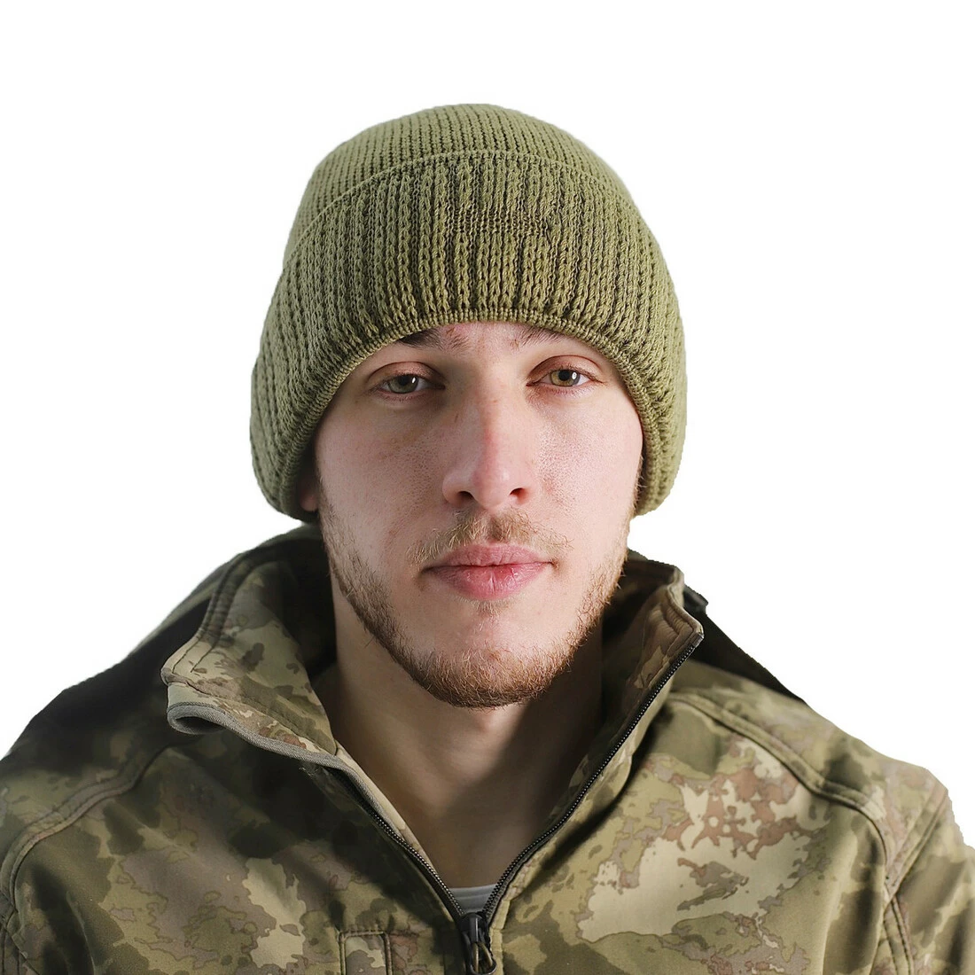Шапка вязанная тактическая для военных и ВСУ, теплая непродуваемая шапка с отворотом анатомическая Хаки