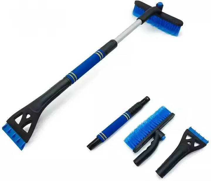 Телескопическая ручка обеспечивает компактное хранение и регулировку длины для удобства. Материалы, из которых изготовлена щётка, устойчивы к воздействию низких температур, что гарантирует её долговечность и сохранение эксплуатационных свойств.