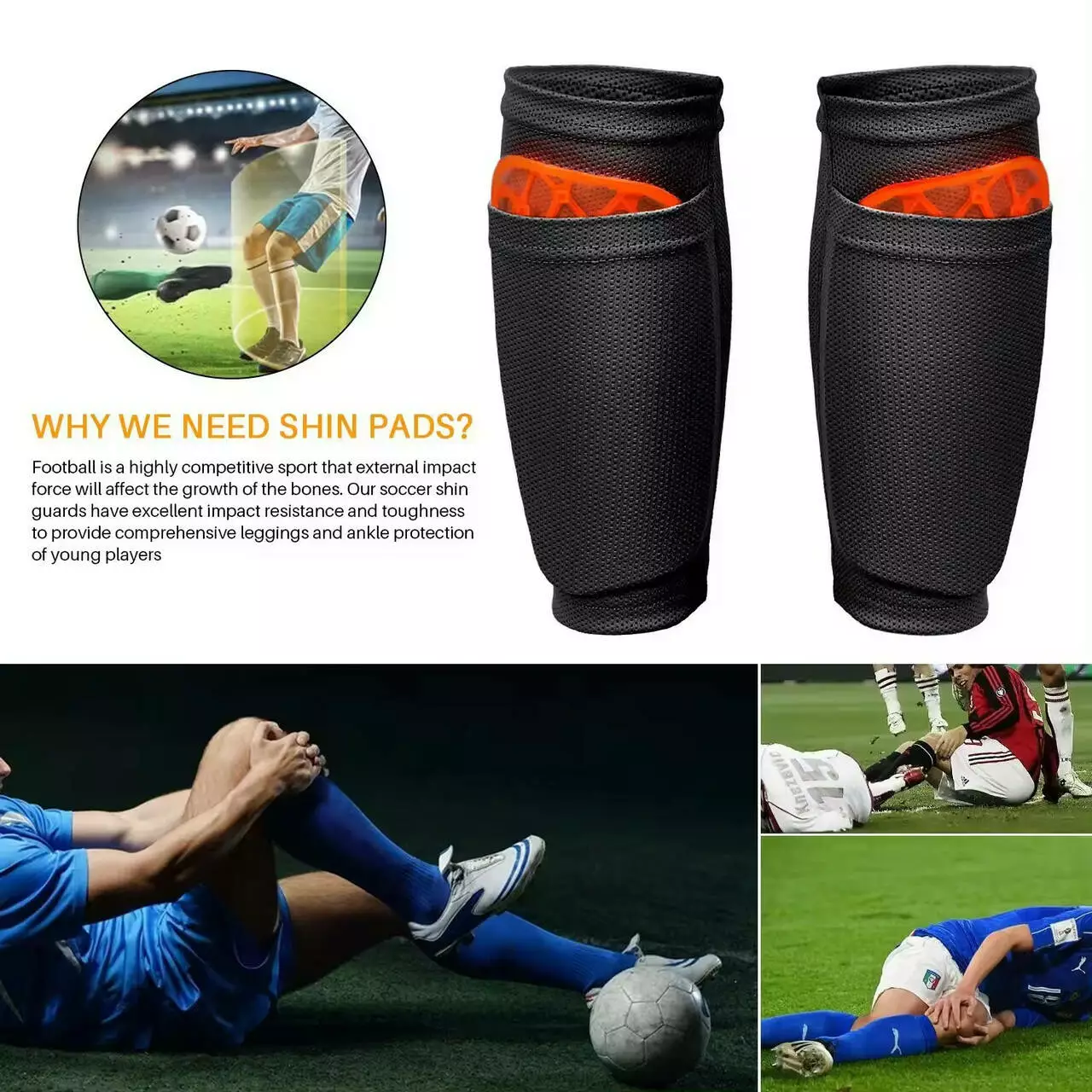 Щитки футбольные дышащие с рукавами для голени CZST-236 Size:M, оранжевые