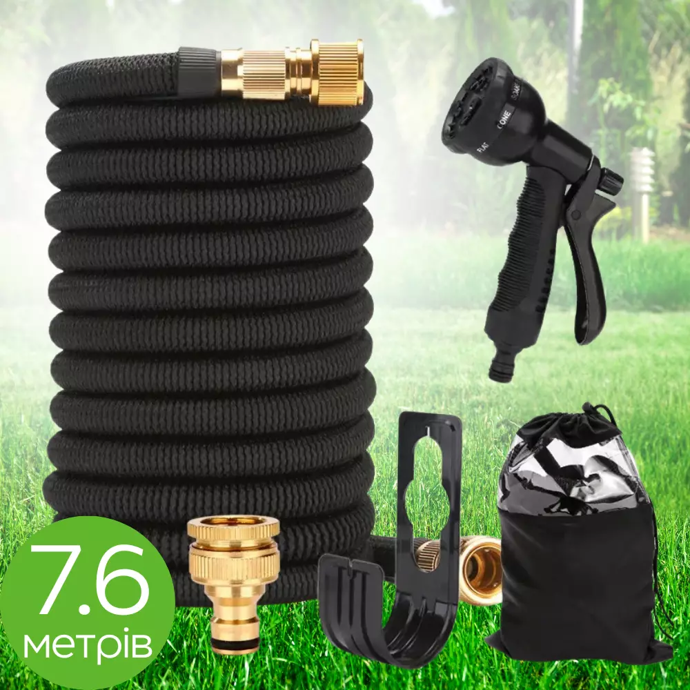 Шланг садовый для полива 7.6 м набор для полива с распылителем, гибкий, растягивающийся, для сада и огорода