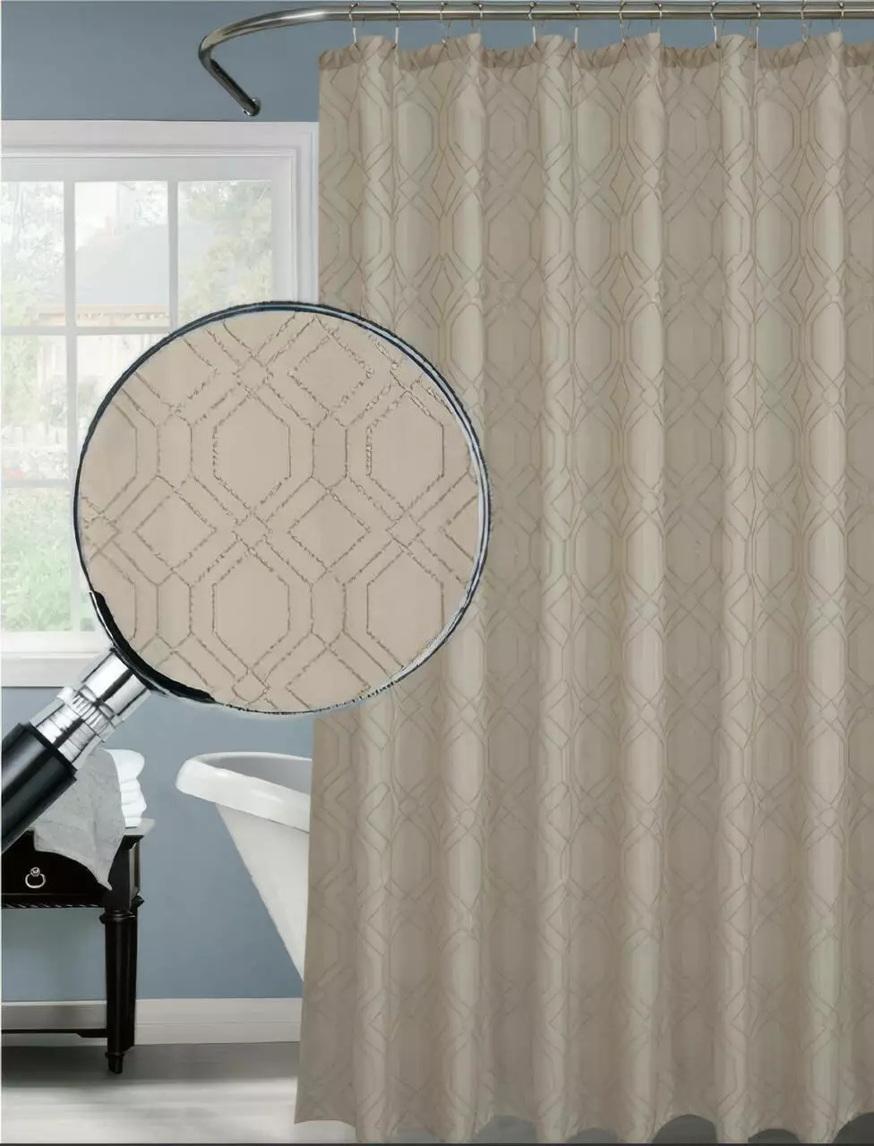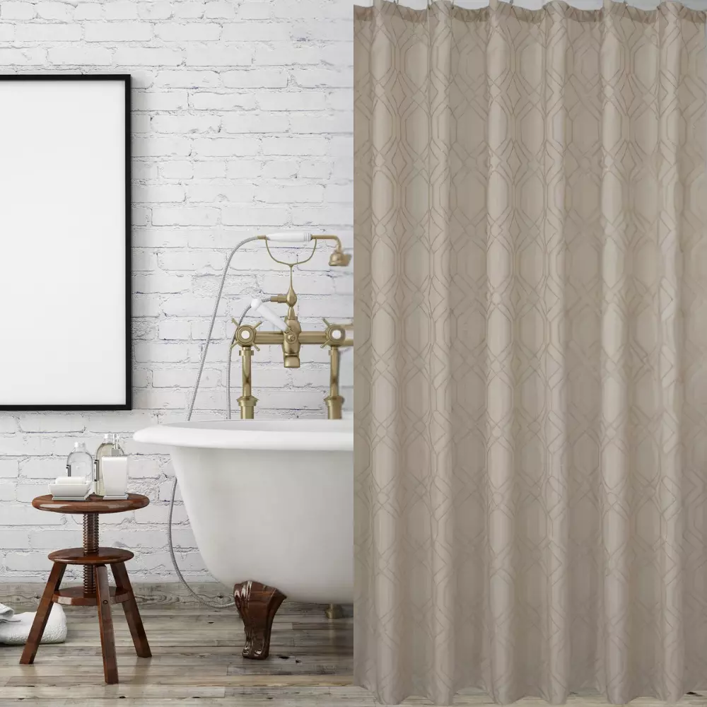 Штора для ванной и душа 180x180 см водоотталкивающая,шторка с принтом для ванной и душевой с крючками,бежевая