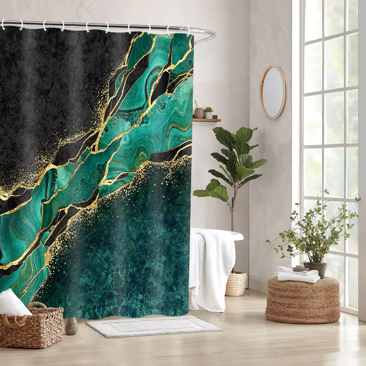Шторка для душа и ванной комнаты с водоотталкивающим покрытием, цвет зеленый 3D-принт