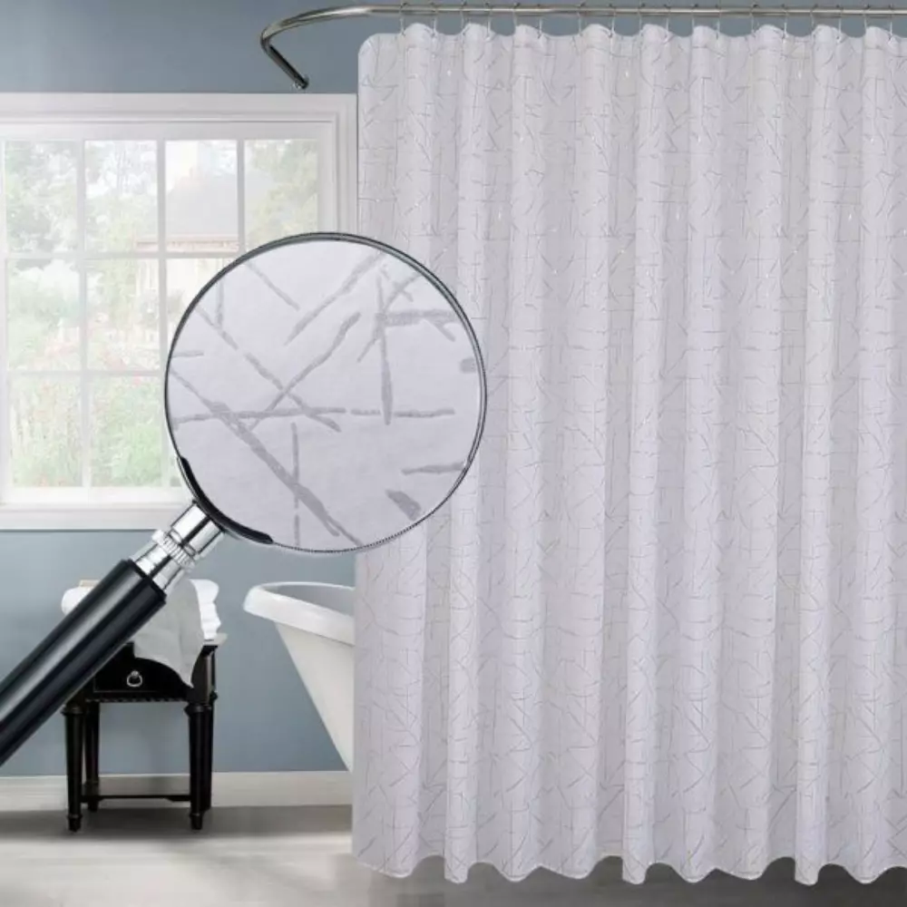 Шторка для ванной и душа 180x180 см, водоотталкивающая с крючками штора для ванной,белая с серебристым узором