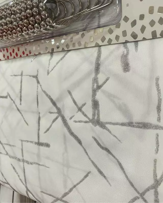 Стильная шторка для ванной и душа в белом цвете с изысканным серебристым узором создаст атмосферу уюта и свежести в вашем интерьере. Водоотталкивающий материал предотвращает разбрызгивание воды, помогая поддерживать чистоту в ванной комнате.