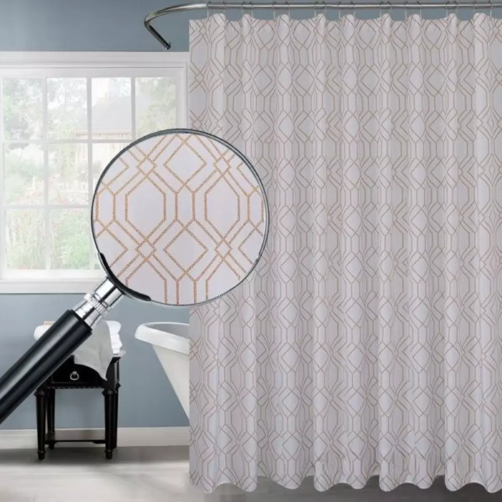 Эта элегантная шторка для ванной и душа не только защитит помещение от брызг воды, но и станет стильным акцентом в интерьере. Белоснежный фон с блестящим золотым узором придает ванной комнате ощущение свежести и роскоши. Изготовленная из 100% полиэстера, она обладает водоотталкивающими свойствами, легко очищается и долго сохраняет безупречный вид.