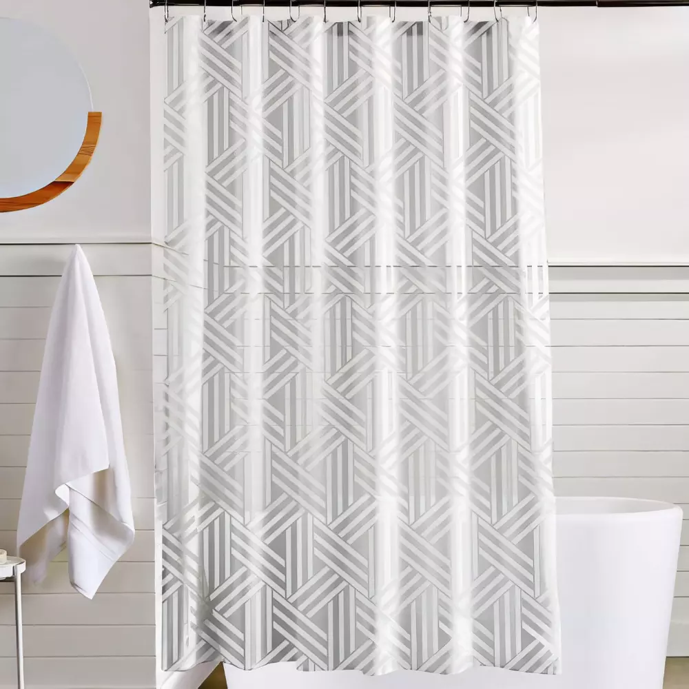 Шторка для ванной и душа 180x180 см,штора для ванной с крючками,прозрачно-белая с серебристым принтом