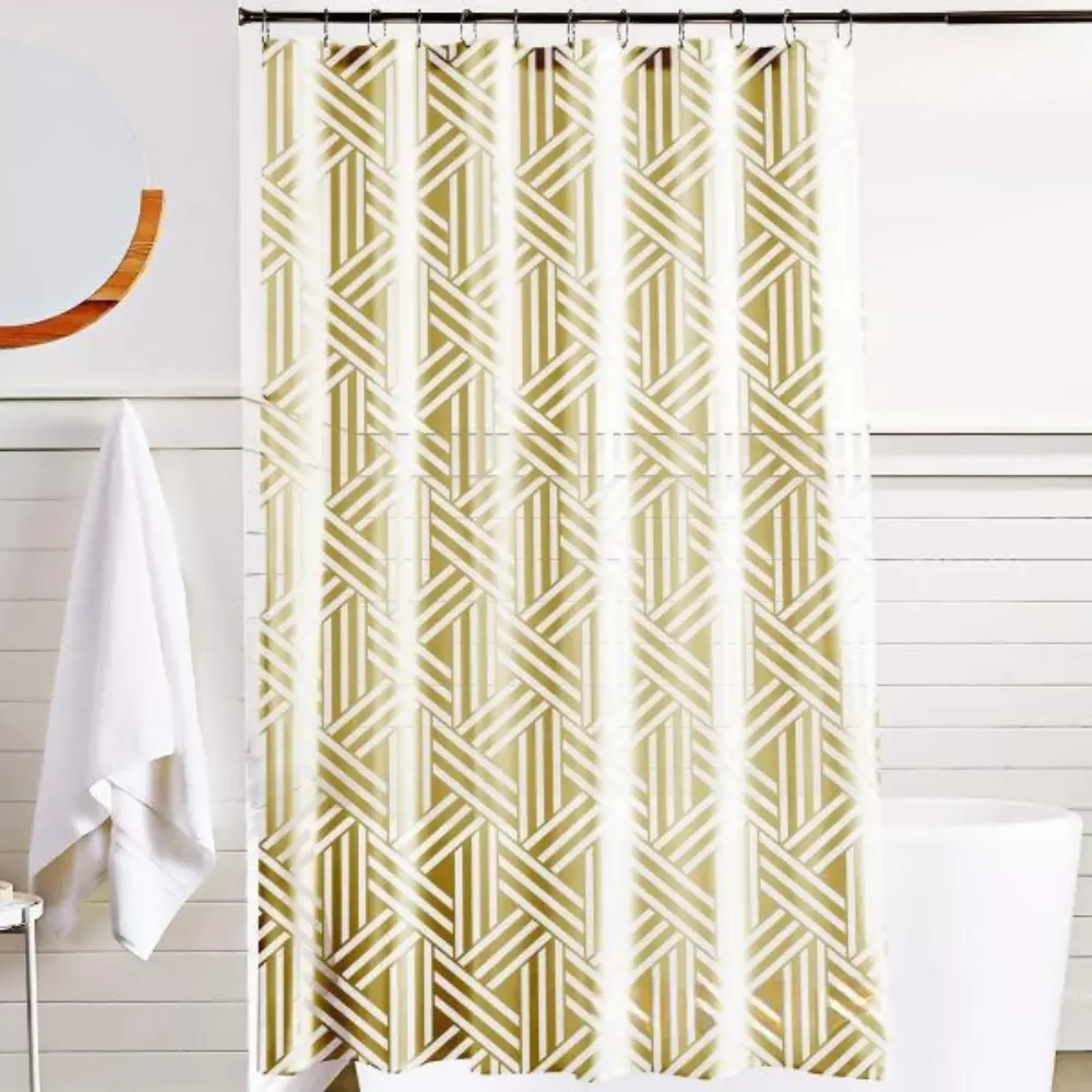 Шторка для ванной и душа 180x180 см,штора для ванной с крючками,прозрачно-белая с золотистистым принтом