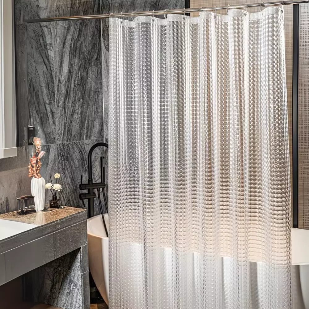 Стильная и практичная шторка для ванной комнаты с 2D-эффектом в прозрачном белом цвете придаст интерьеру свежий и современный вид. Выполнена из 100% PEVA – экологичного, водоотталкивающего и устойчивого к плесени материала, который легко чистится и быстро сохнет.