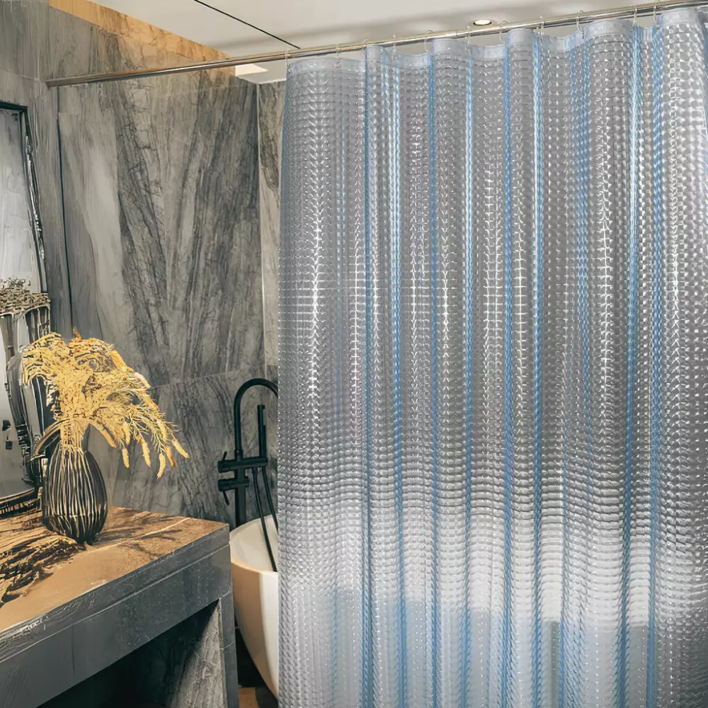 Стильная и практичная шторка для ванной комнаты с 2D-эффектом в прозрачном черном цвете придаст интерьеру свежий и современный вид. Выполнена из 100% PEVA – экологичного, водоотталкивающего и устойчивого к плесени материала, который легко чистится и быстро сохнет.
