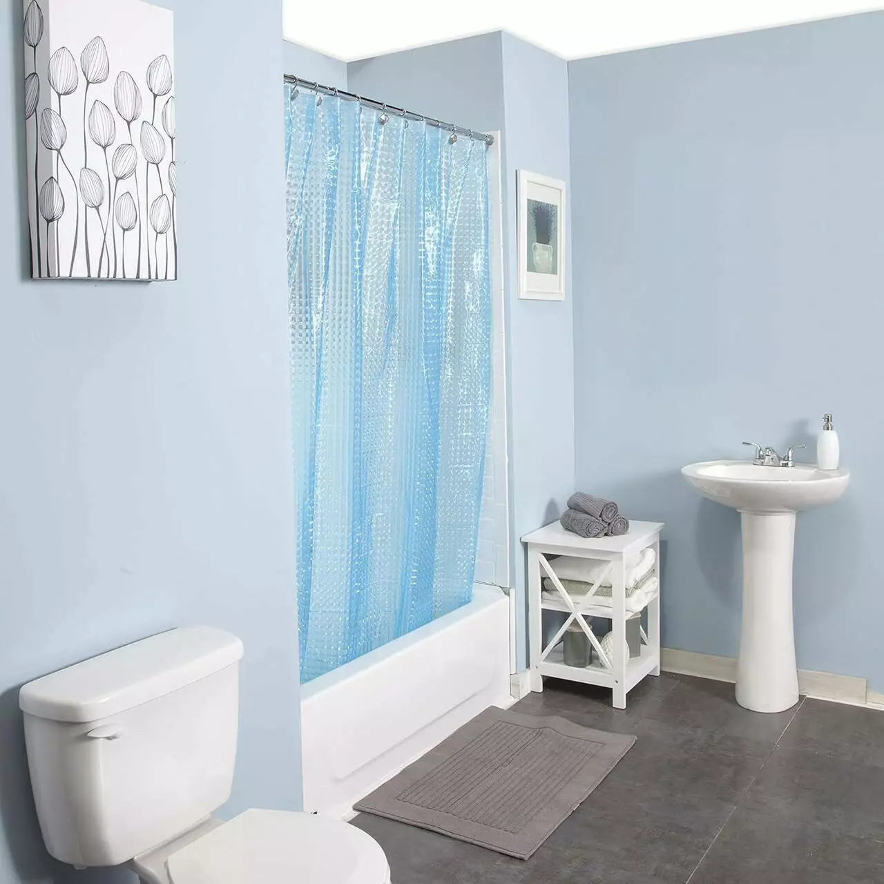 Шторка для ванной и душа водоотталкивающая, штора для душевой и ванной комнаты 180x180 см с 2D эфектом голубая