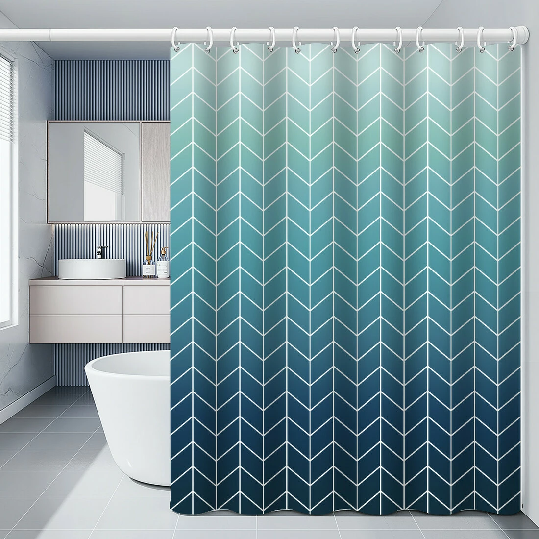Шторка для ванной комнаты Bathlux 180 x 180 см с водоотталкивающим покрытием, бирюзово-синий градиент