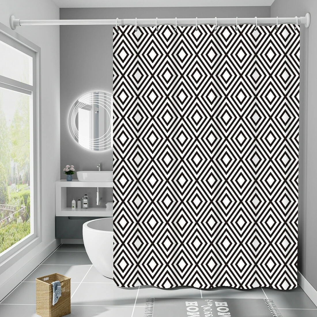 Шторка для ванны из полиэстера водонепроницаемая Bathlux 180x180 см с кольцами, занавеска для ванной комнаты