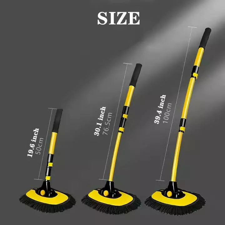 Швабра автомобильная для мойки с выдвижной телескопической изогнутой ручкой размер 28х100 см,желтая