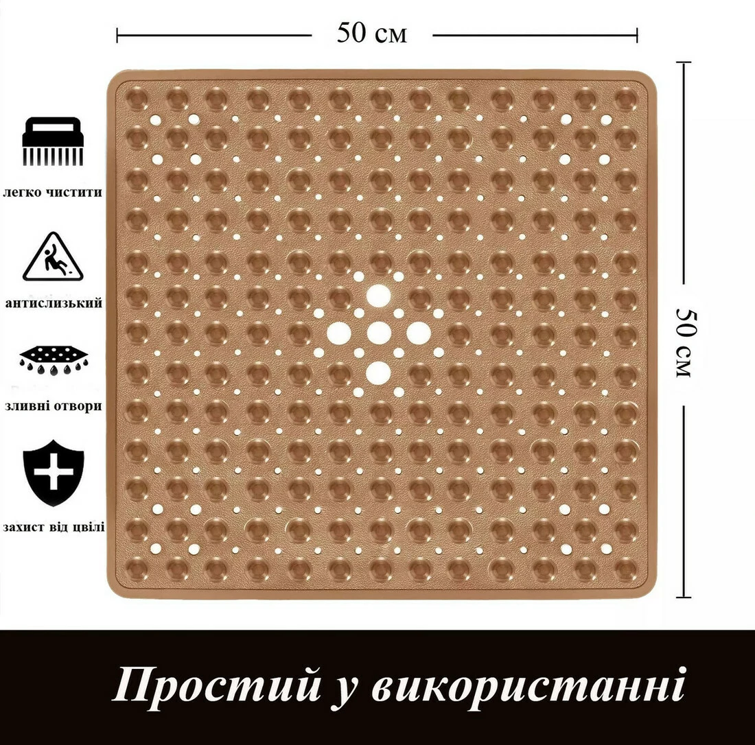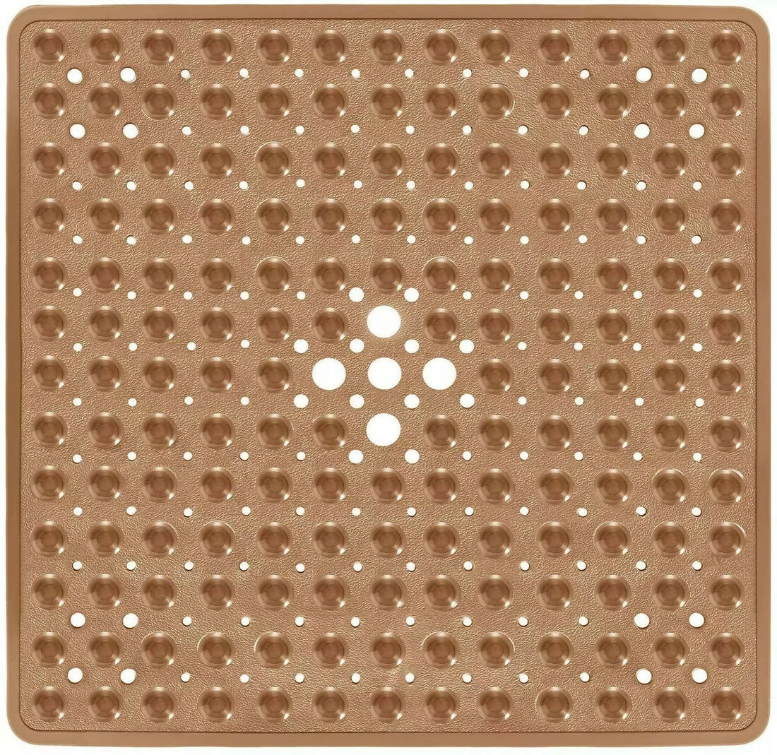 Силиконовый коврик противоскользящий Bathlux на присосках для ванны и душа, квадратный 52*53 см Коричневый