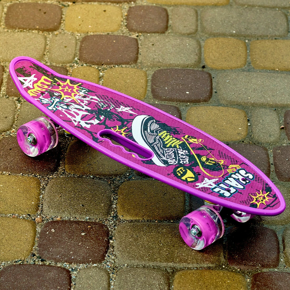 Скейт Пенни борд Skate со светящимися колесами ,алюминиевая подвеска не скользящая поверхность Фиолетовый