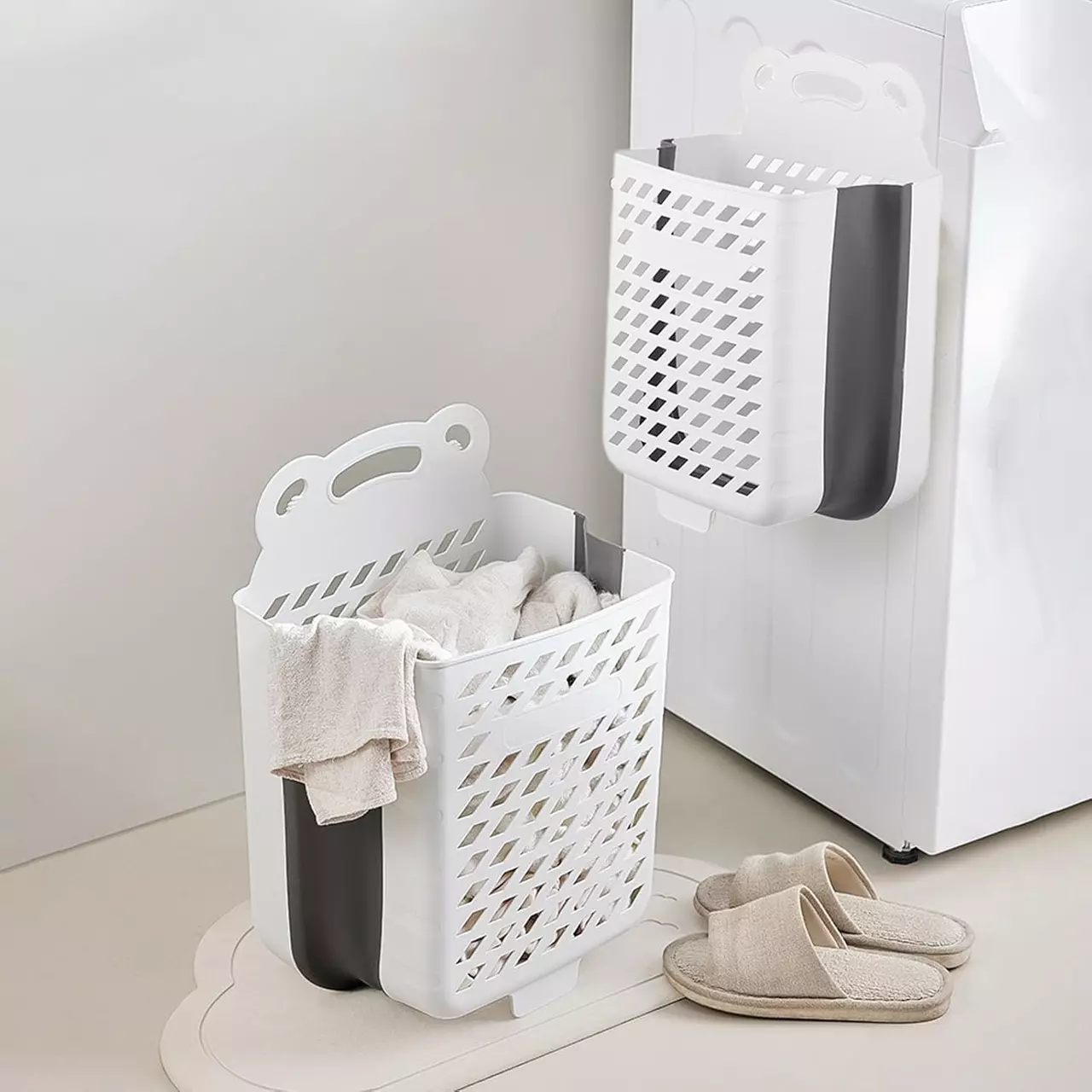 Складная корзина для белья с удобной ручкой, пластиковый органайзер для вещей, 28×17×38см, белого цвета