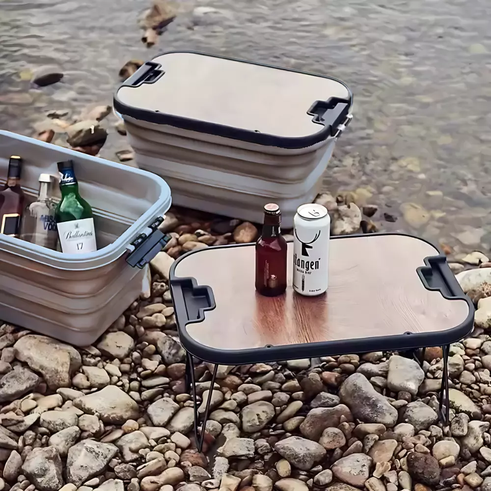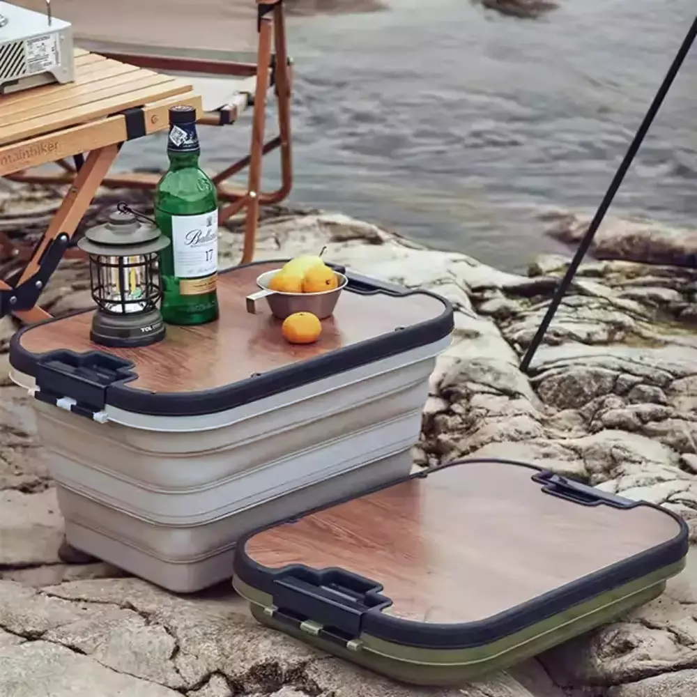 Уникальной особенностью является наличие встроенного стола, который можно использовать для подачи блюд, как поднос для льда или в качестве рабочей поверхности во время кемпинга. Легкость транспортировки обеспечивается удобными ручками, а многофункциональность позволяет использовать ящик не только на улице, но и в доме.