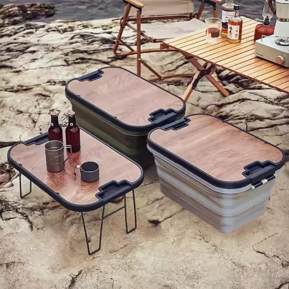 Складной контейнер для хранения, органайзер с крышкой-столиком, ящик для кемпинга, 56×37×29см, серый