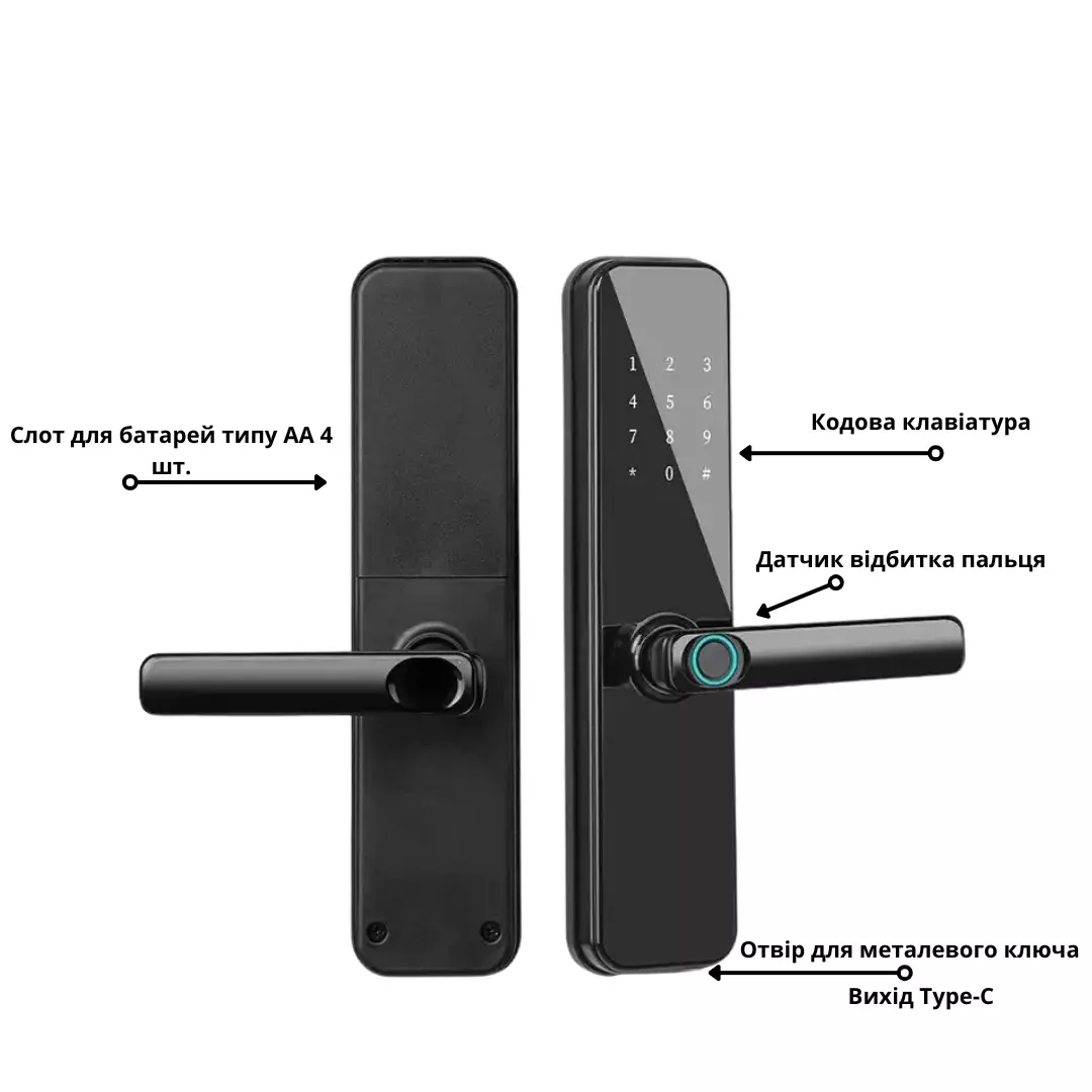 Способы открытия: отпечаток пальца, пароль, карта, ключ, приложение TTlock