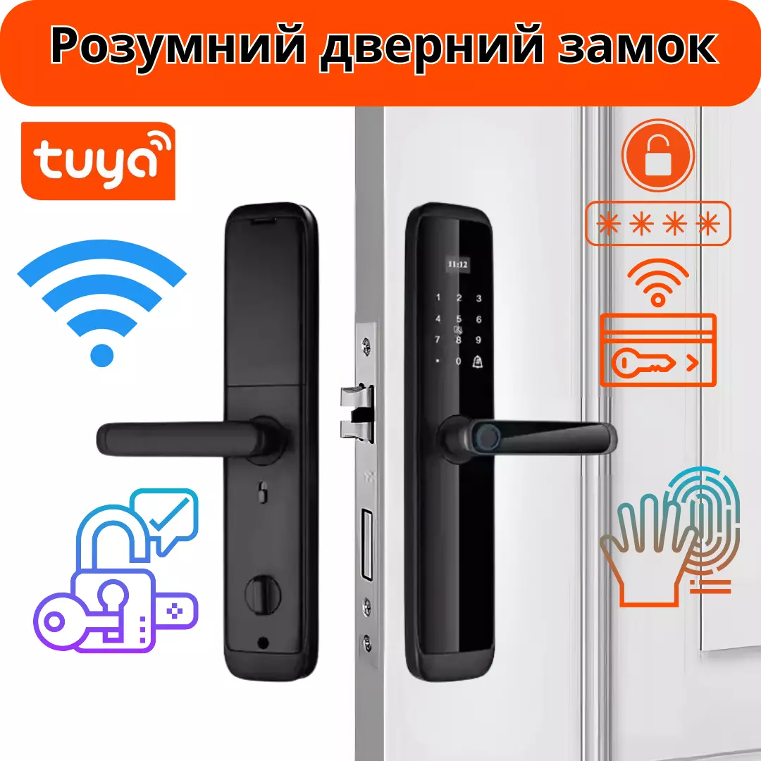 Смарт замок кодовый умный дверной KHS-X06 с отпечатком пальца и ключ-картой ,черный