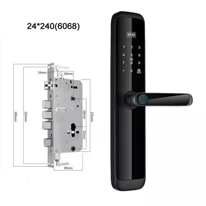 Замок подходит для стандартной врезки 24*240 6068 мм и легко монтируется. Его питание осуществляется от четырёх батареек типа АА, которые обеспечивают долгую автономную работу. Возможность программирования до 100 отпечатков пальцев делает его подходящим для больших семей или офисов. Размер панели 77 х 376 мм обеспечивает удобство эксплуатации.