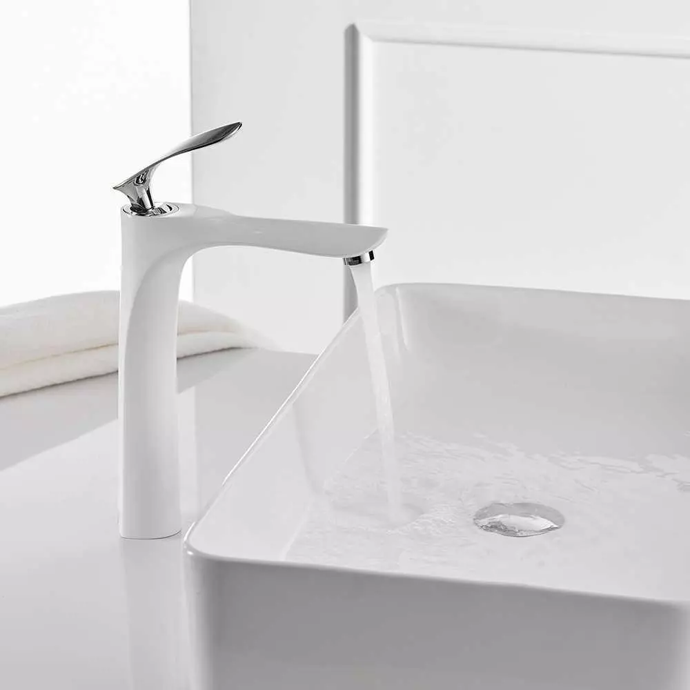 Смеситель дизайнерский для раковины кран в ванну однорычажный WanFan люкс качества белый-хром