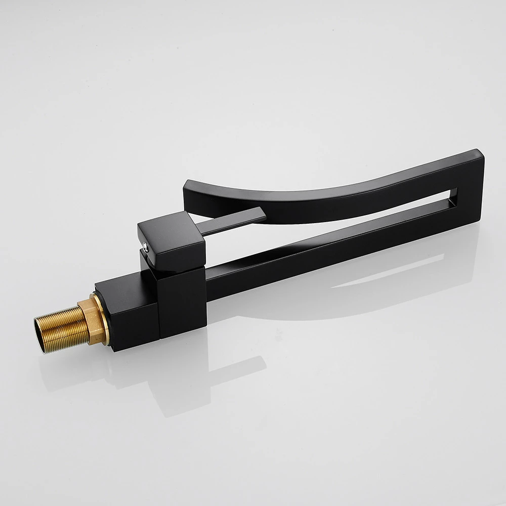 Смеситель дизайнерский для раковины однорычажный кран горизонтальный монтаж WanFan для ванны Черный матовый