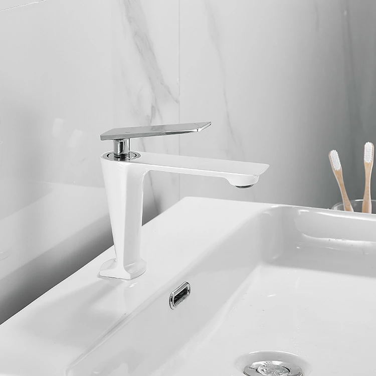 Смеситель дизайнерский для умывальника однорычажный кран горизонтальный монтаж WanFan Белый-хром