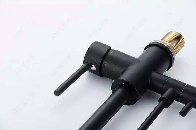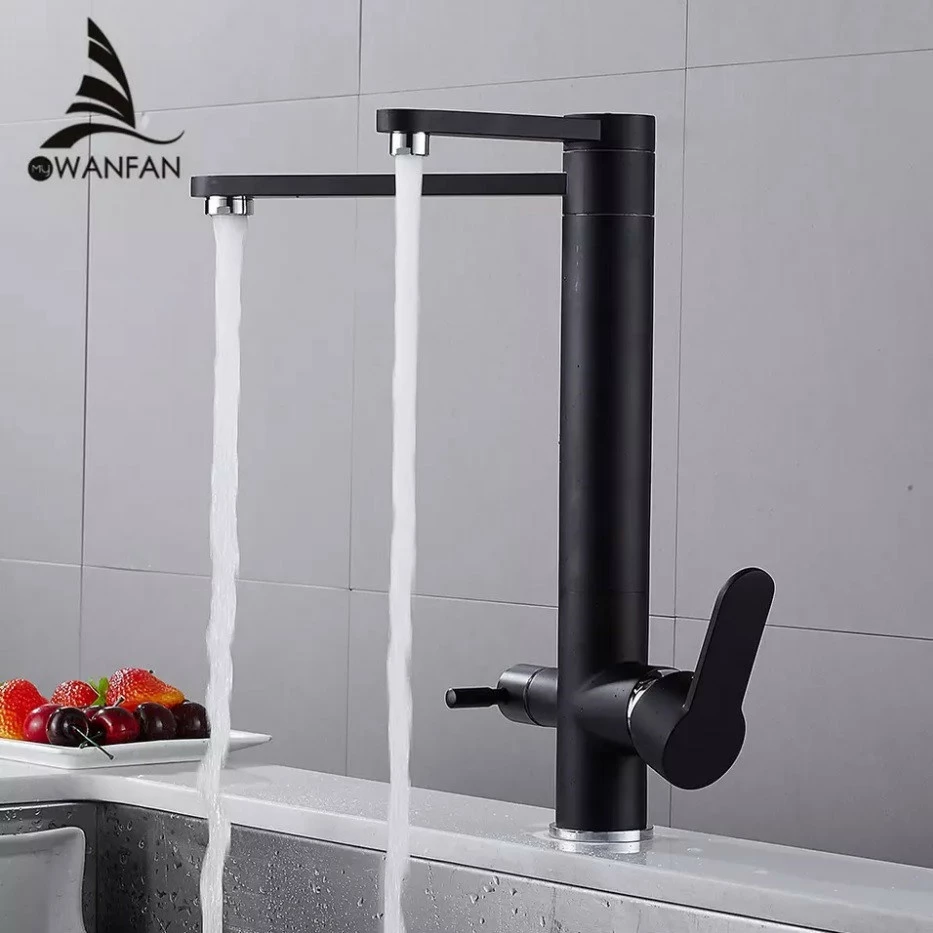 Смеситель для кухни для фильтрованной воды двухрычажный, кран кухонный с двойной ручкой WanFan Черный