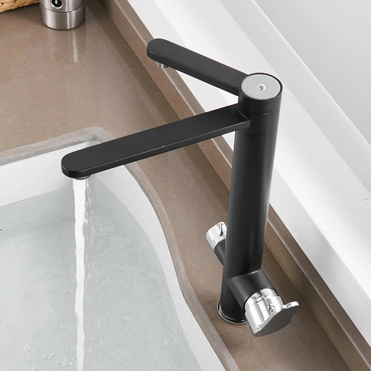 Смеситель для кухни двухрычажный кран для фильтрованной воды WanFan вертикальный монтаж Черный
