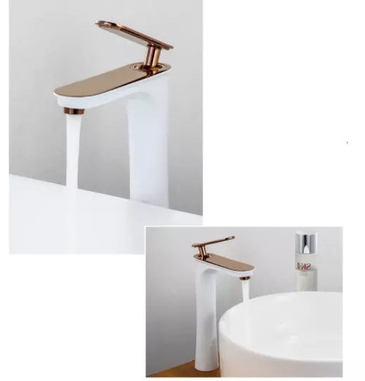 Смеситель для раковины с одной ручкой латунный, однорычажный, современный кран WanFan Белый с Розовым Золотом