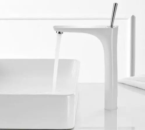 Смеситель для раковины WanFan люкс качества, однорычажный, керамический картридж Хром-белый